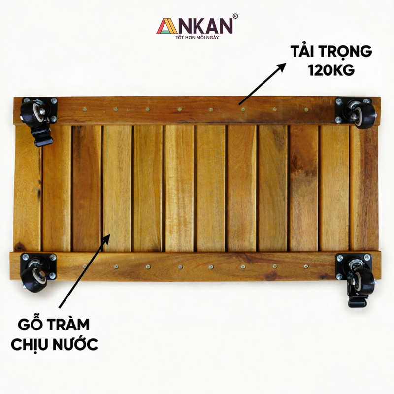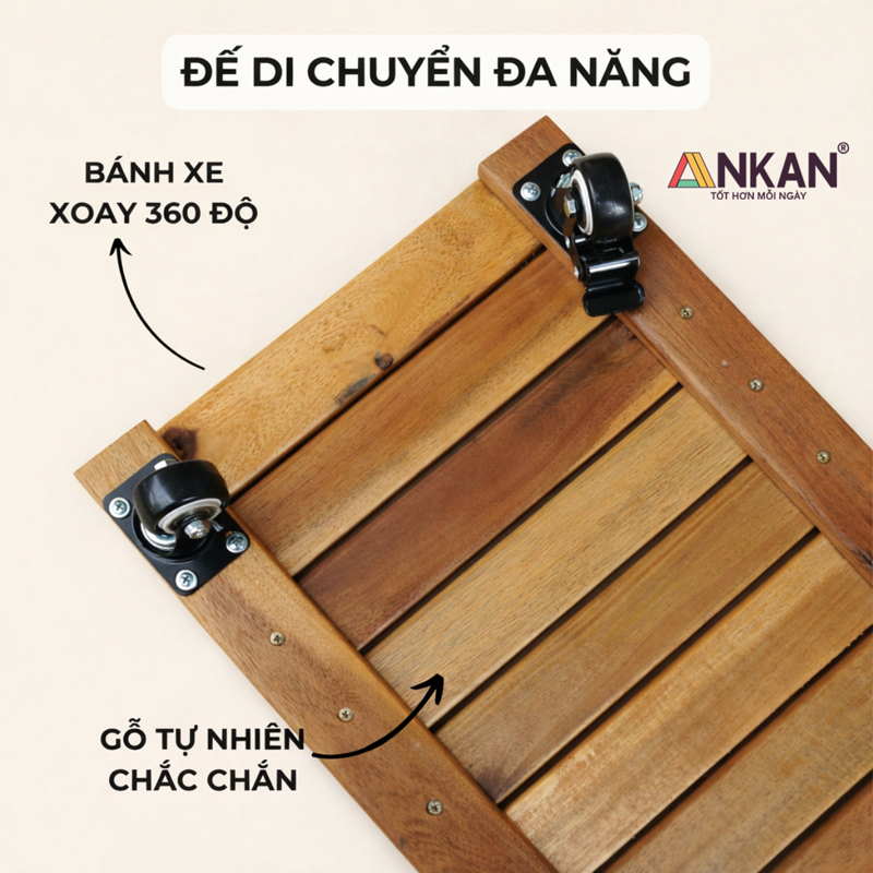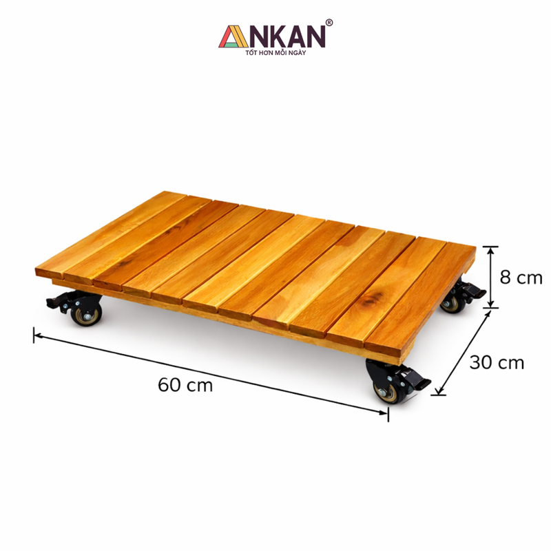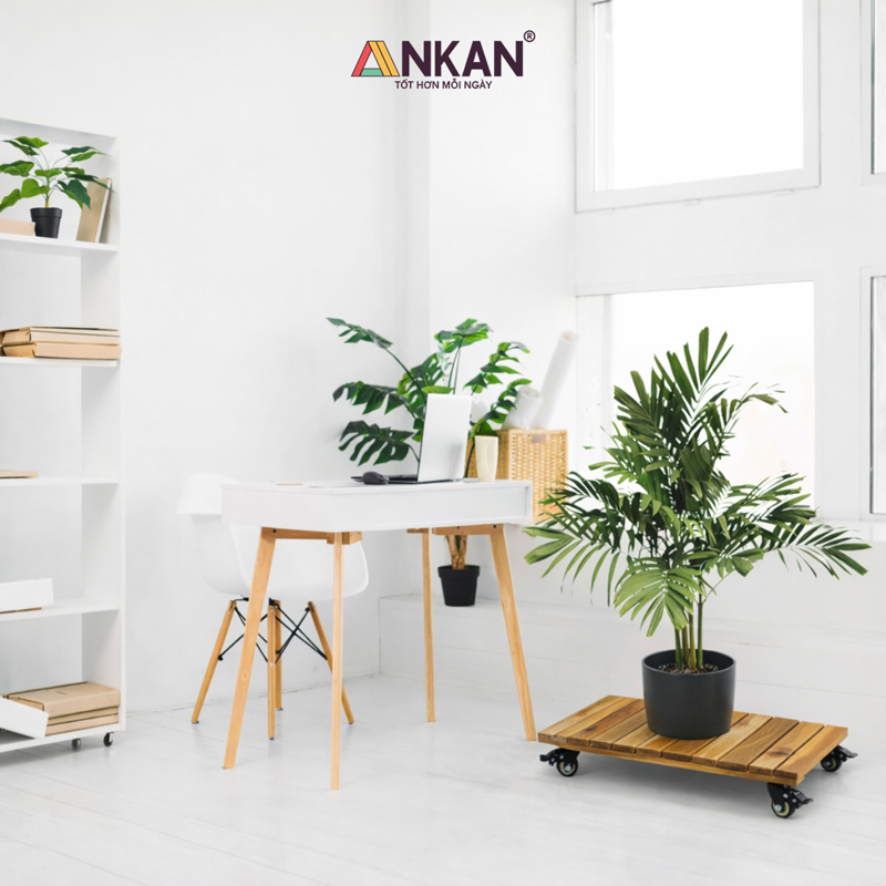 Kê chậu cây ban công có bánh xe ANKAN – Kệ gỗ chịu lực 120kg, di chuyển chậu dài tiện lợi, bền đẹp